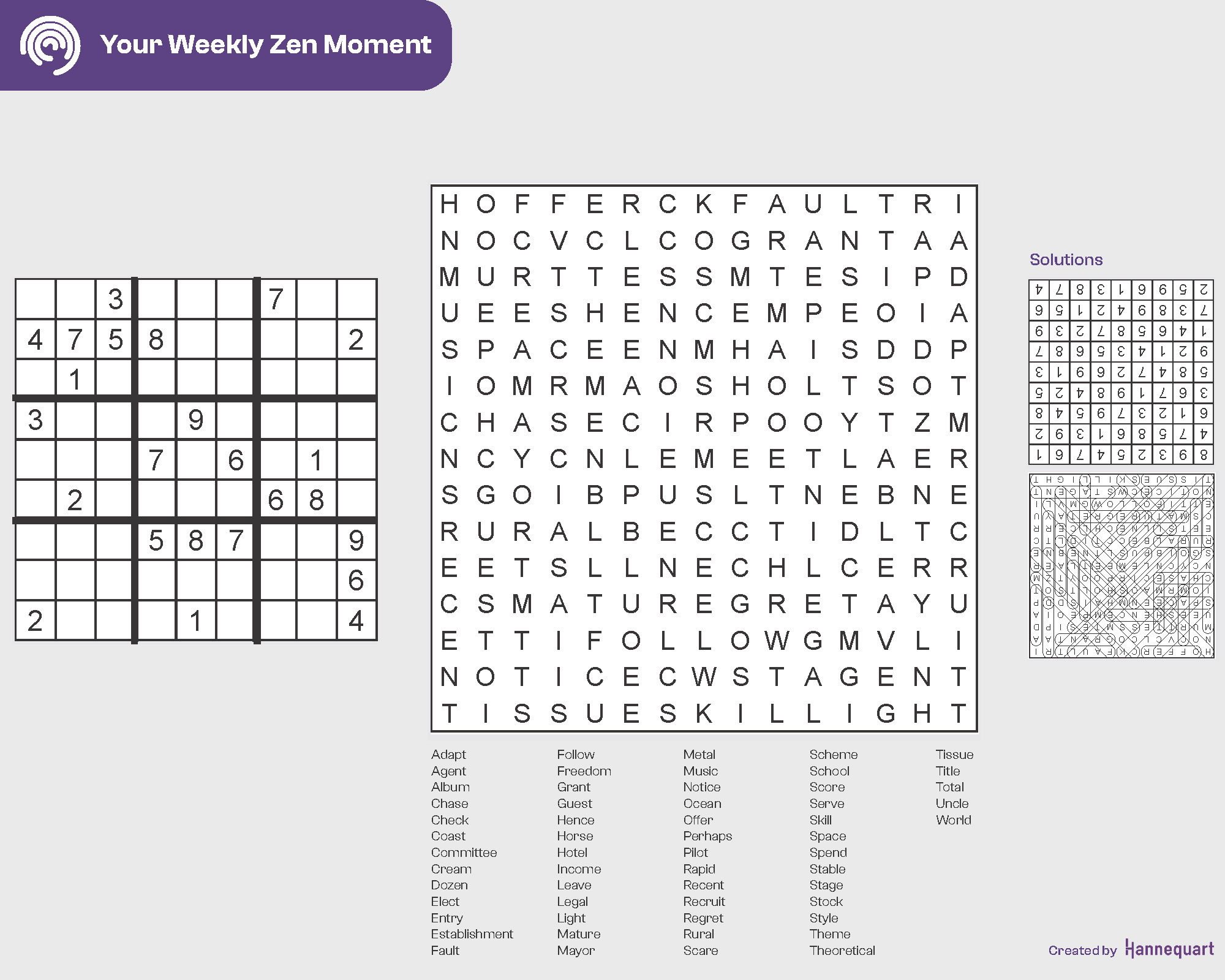 Download a PDF Version In collaboration with: Crack The Code: Discover the fun and fulfillment of these challenging sudokus and word searches from Hannequart