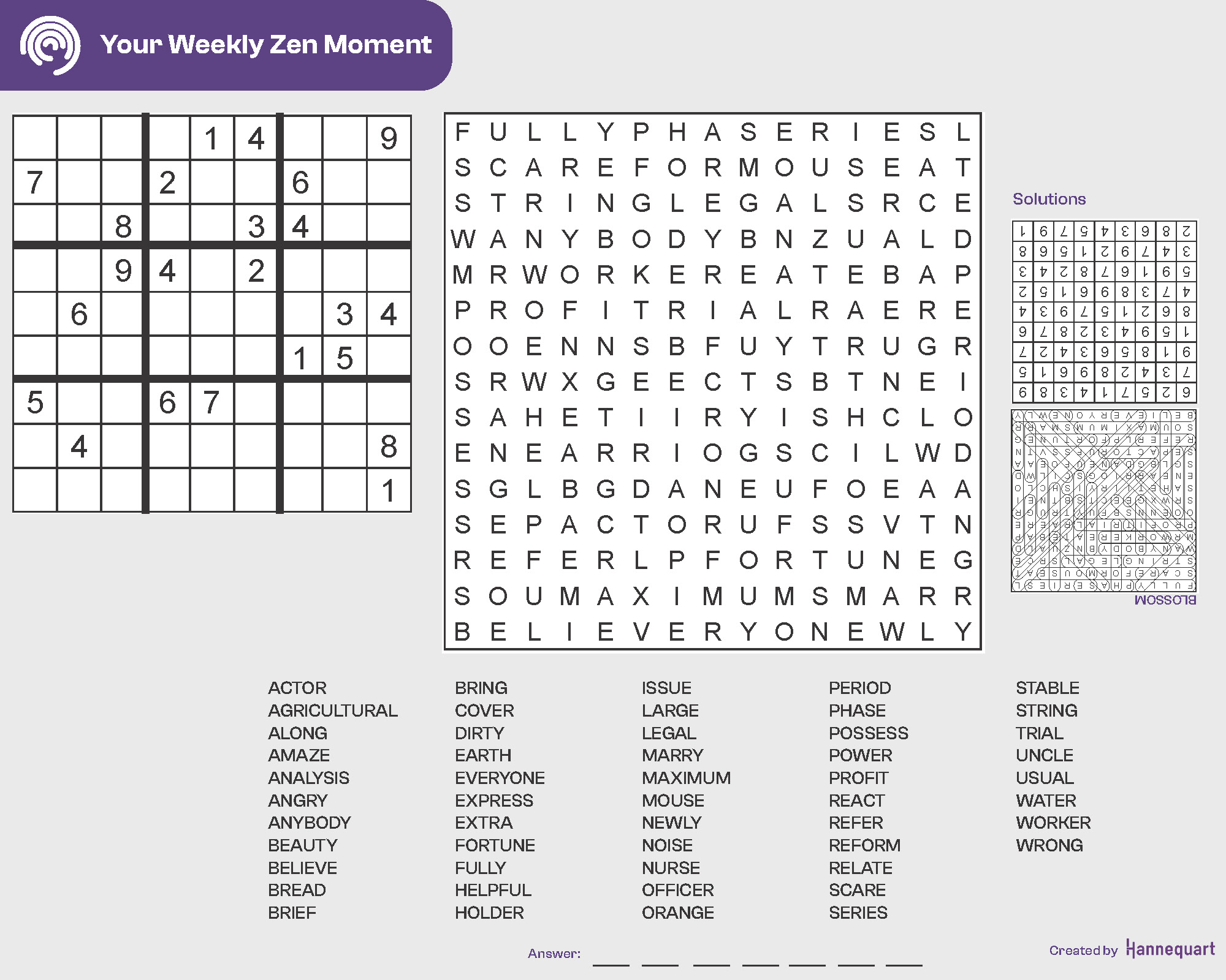 Discover the fun and fulfillment of these challenging sudokus and word searches from Hannequart