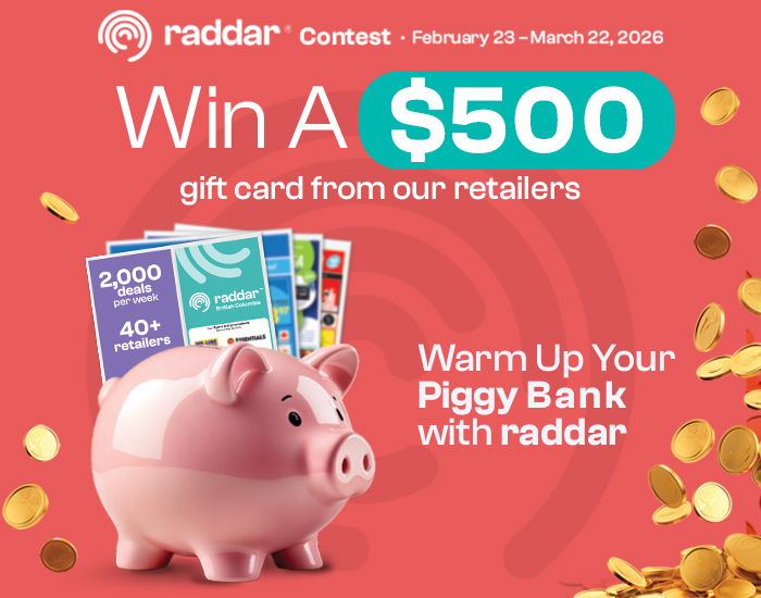 When submitting your entry form, you must be a raddar® newsletter subscriber to be eligible. A limit of one (1) entry per person, per day, per email address. The contest is open to all legal residents of British Colombia.